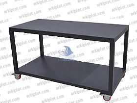 Ref: AKM.MT1838BMesa de acero pintado para planchas Arkipress doble plato 50x70x75cm, con estructura de tubo de 40 mm, chapa de 0.2 mm y ruedas de 70 mm para fácil movilidad y alta resistencia.