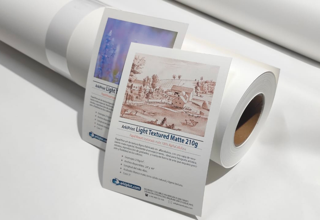 Nuestro papel fine art ArkiPrint Light Textured Matte de 210gr es la combinación perfecta entre sensibilidad artística y tecnología avanzada. Su superficie mate de tono cálido, ligeramente color hueso, junto con su sutil textura, aporta profundidad y carácter a cada impresión, haciendo que cada detalle destaque de manera natural.